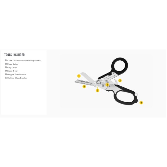 Leatherman Raptor – профессиональные ножницы, в которых вы найдете все необходимое для быстрой и безопасной работы в экстренных ситуациях. Разработано в сотрудничестве со спецназом, профессиональными парамедиками и пожарными. Раптор сбалансирован для работы врача, без лишних и усложняющих работу функций.